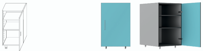 Дверцы - глухие; щитовые полки; изготовлено из HPL панелей; представленны в разной цветовой гамме.