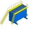 Гидравлическое перемещение секций (отсеков), площадки для обслуживания установки и хранения пуансонов. Виброуплотнение бетонной смеси при помощи высокочастотных вибраторов, система обогрева. Теплоноситель – пар/вода.